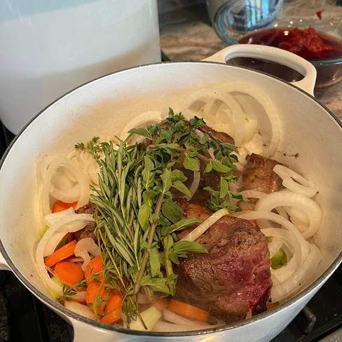 This recipe, which started with a friend, was an experiment with short ribs, using a wine and bone broth sauce to slow cook them. The very best!